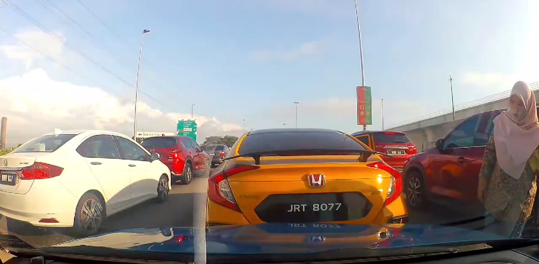 Menerusi video tersebut, Dapat dilihat, kenderaan jenis Honda Civic yang berada di hadapannya mengundur secara tiba-tiba.