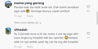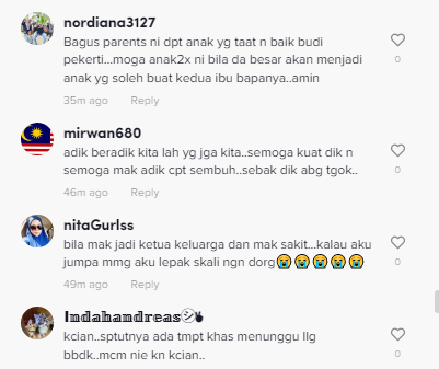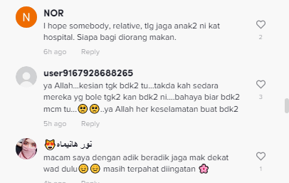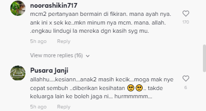 “Kesian anak2 masih kecil.. moga mak nya cepat sembuh.. diberikan kesihatan”