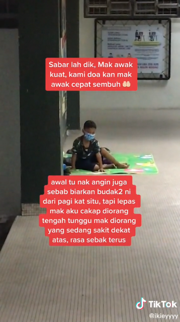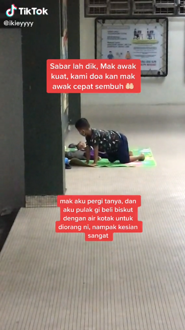Namun siapa sangka, bila didekati, rupa-rupanya dua beradik tersebut sedang menunggu ibunya yang sakit.